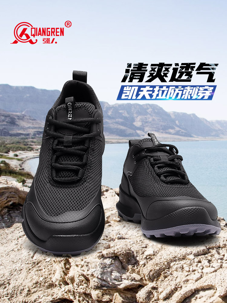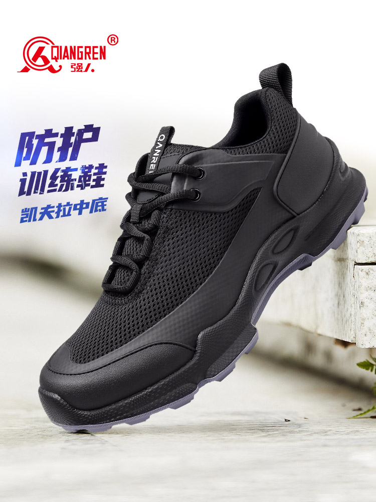 强人3515户外训练鞋防穿刺透气运动跑步鞋男鞋 透气休闲鞋 31QRDS03S-5L 黑色