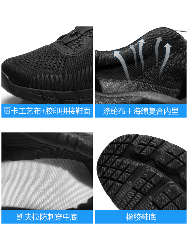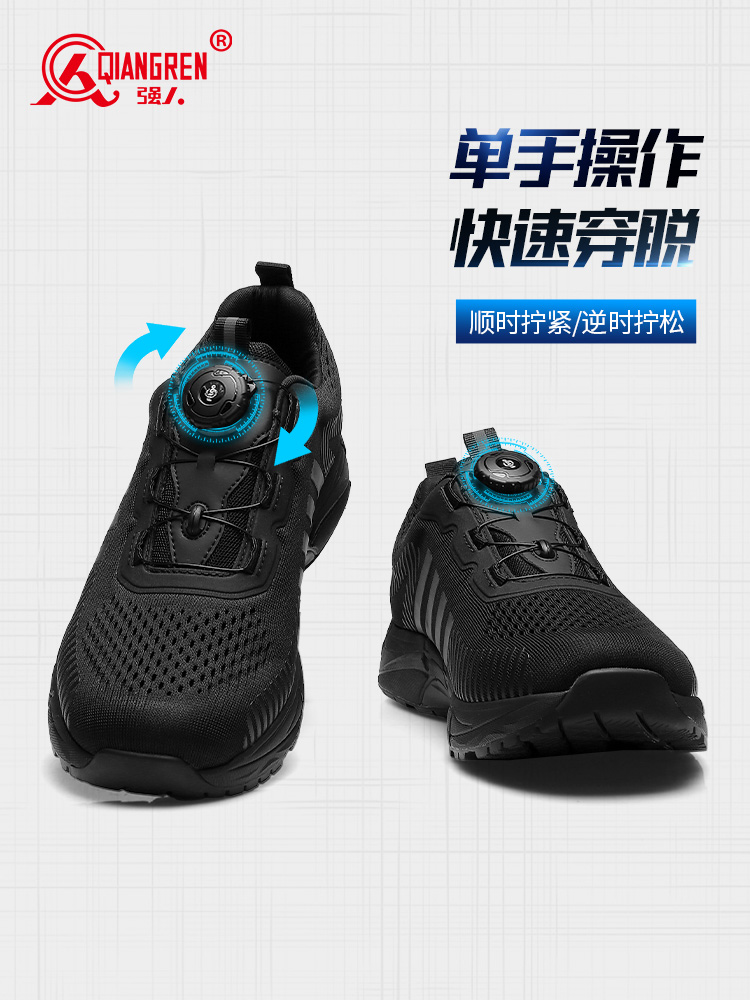 强人休闲鞋透气缓震运动男鞋际华3515旋转扣免系鞋带快反跑步鞋凯夫拉防穿刺户外训练鞋 22DSYDX-003 黑色