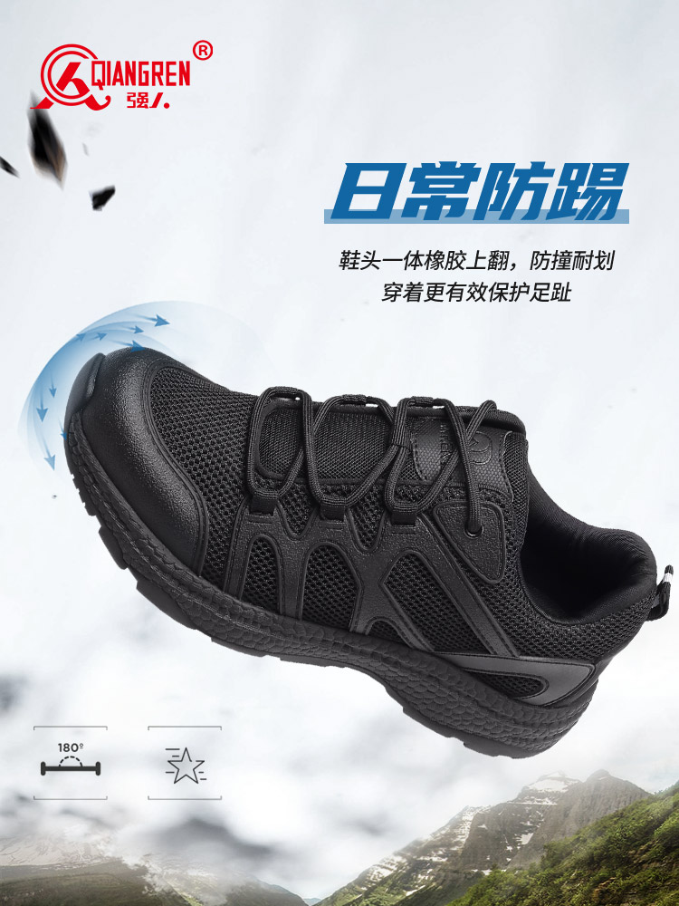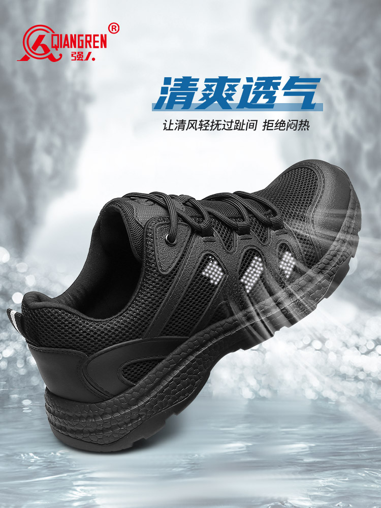 强人3515户外运动鞋爆米花透气缓震训练鞋男休闲鞋 82XL 黑色