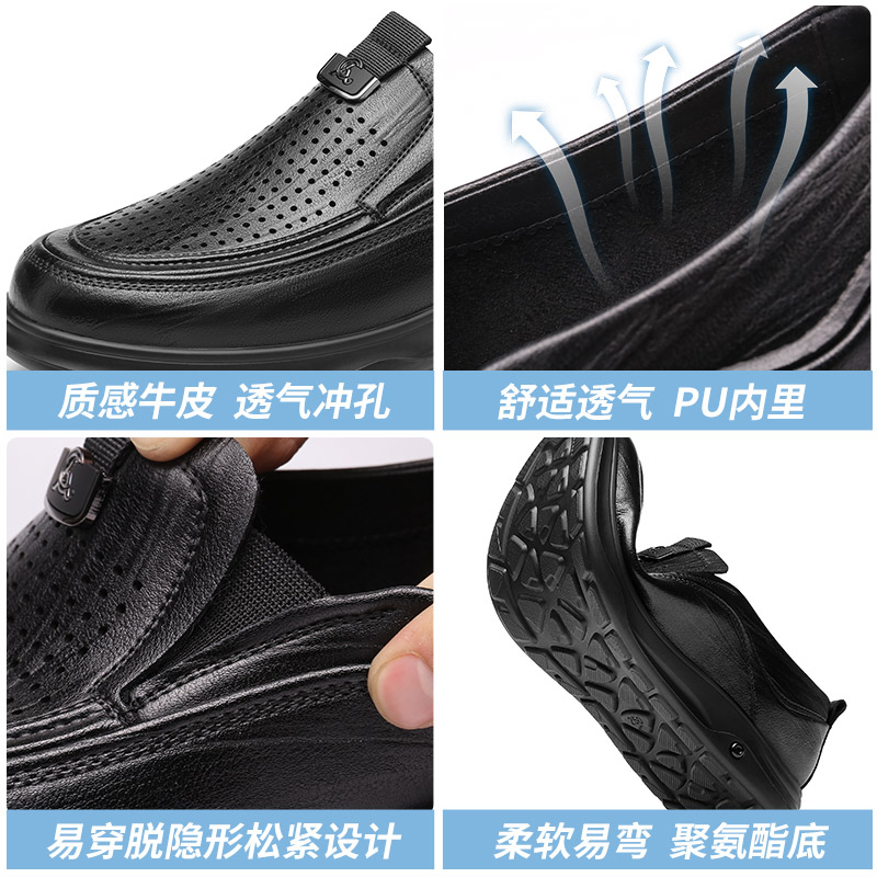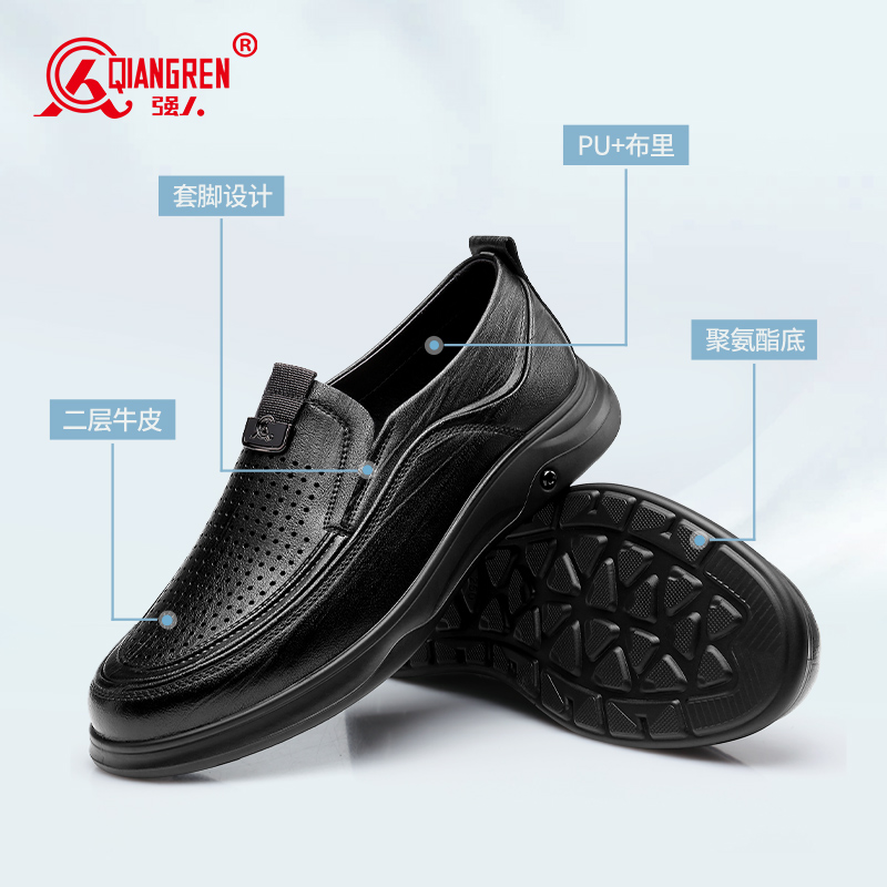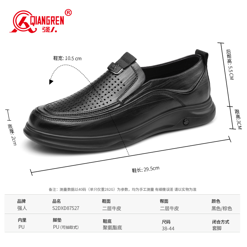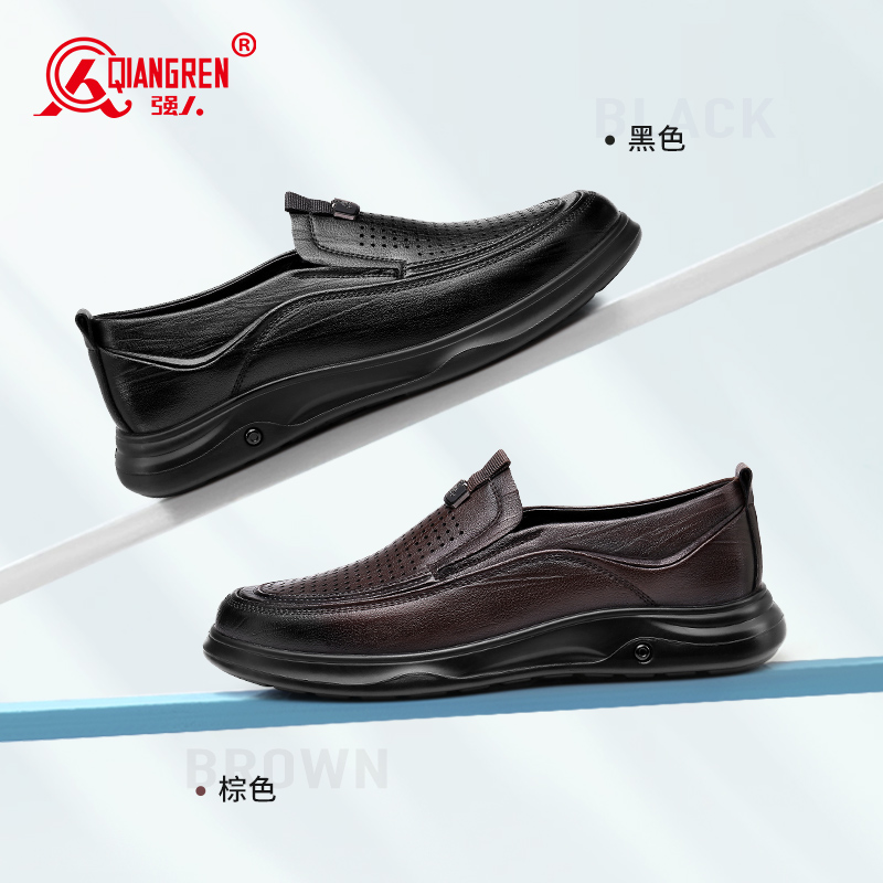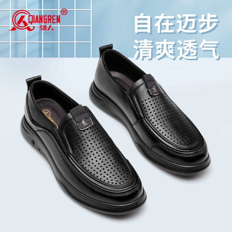强人3515镂空皮鞋 87527 男夏季透气凉皮鞋真皮一脚蹬商务休闲鞋爸爸鞋子