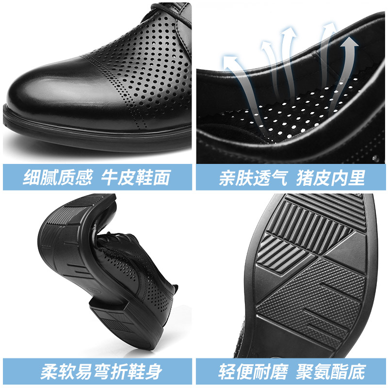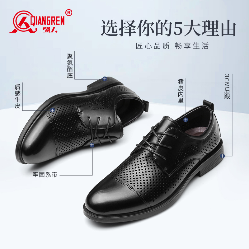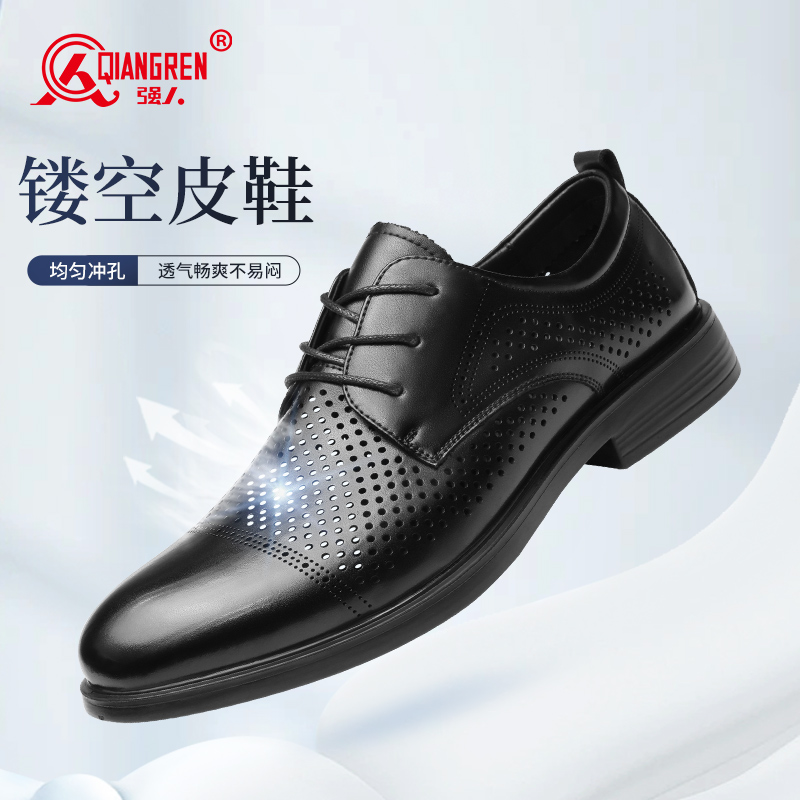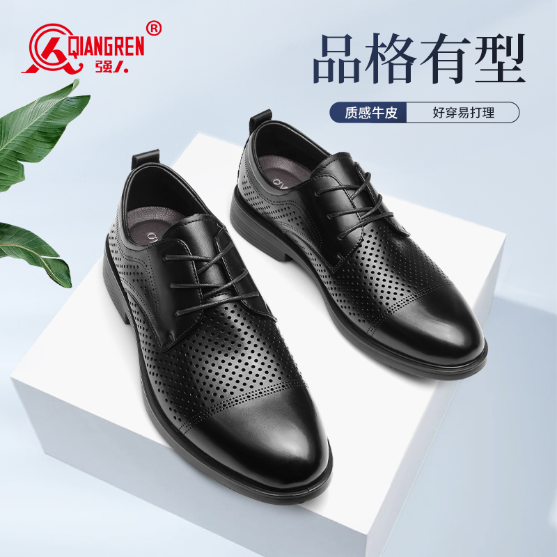 强人3515镂空皮鞋男真皮系带商务凉鞋 05117 夏季透气休闲洞洞皮鞋超轻软