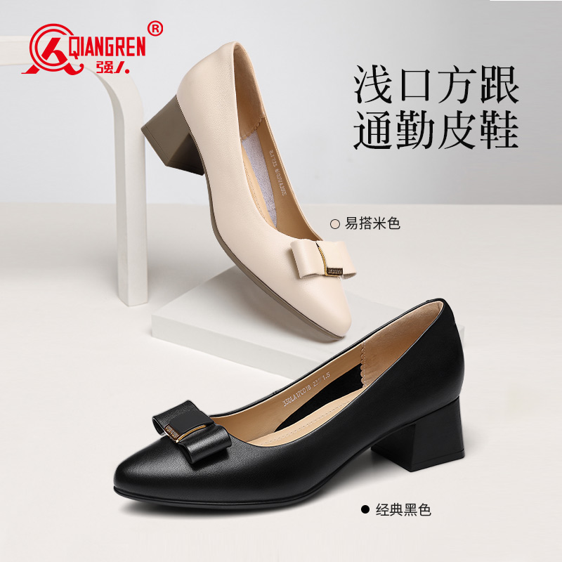 3515强人女鞋70018浅口高跟鞋女单鞋通勤小皮鞋优雅气质工作鞋粗跟