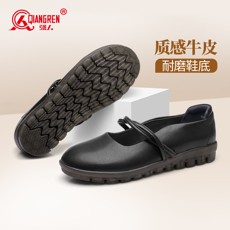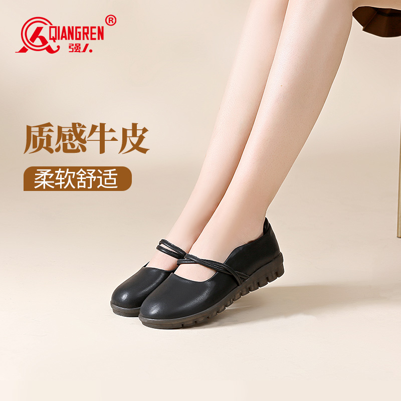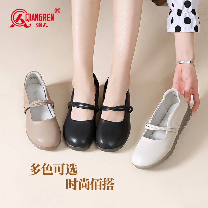 强人3515玛丽珍女鞋237067平底浅口小皮鞋软底舒适单鞋2024秋季真皮法式