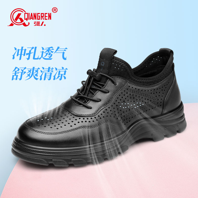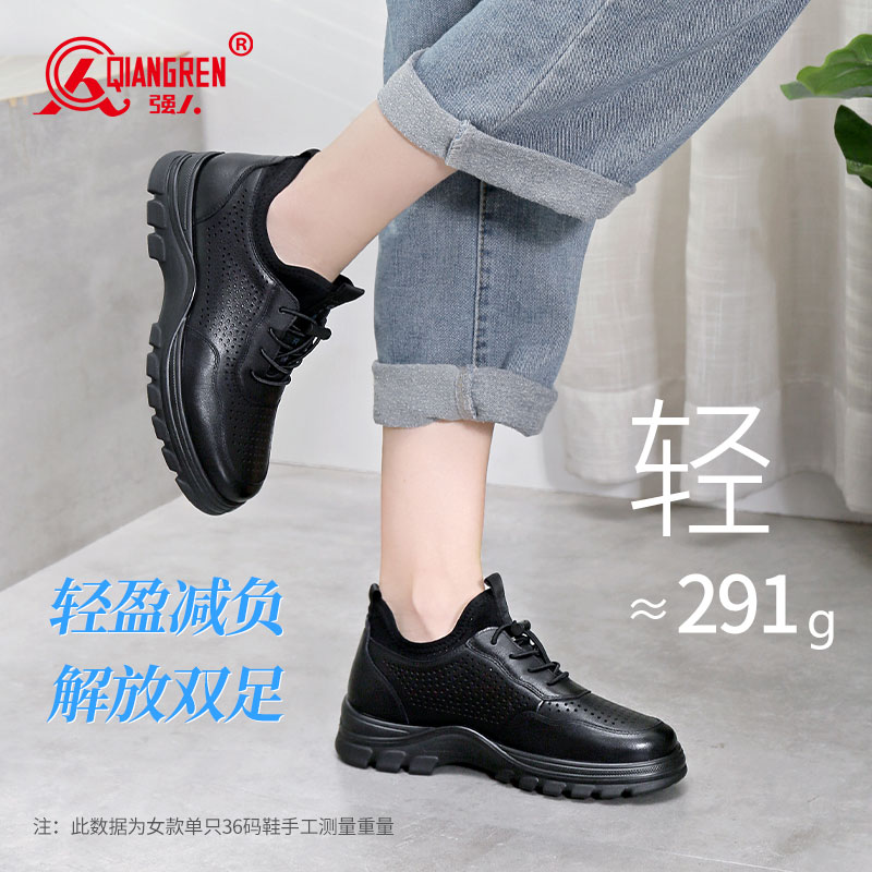 强人3515女休闲皮鞋73240夏季镂空透气凉皮鞋真牛皮运动鞋