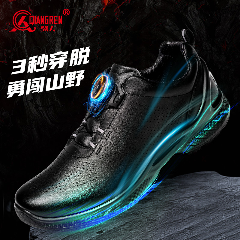 3515强人男鞋户外训练鞋BY323牛皮百搭运动皮鞋休闲跑步执勤鞋快扣鞋