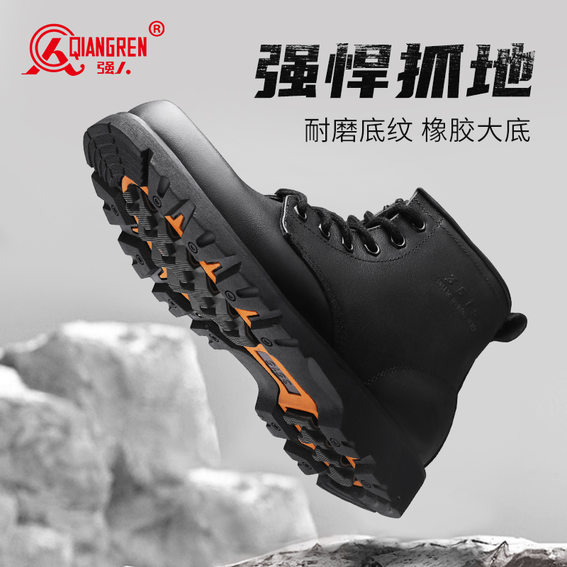 强人3515男靴正品户外工装靴战术靴短筒皮靴真皮耐磨防滑男士靴子351501