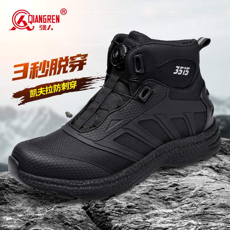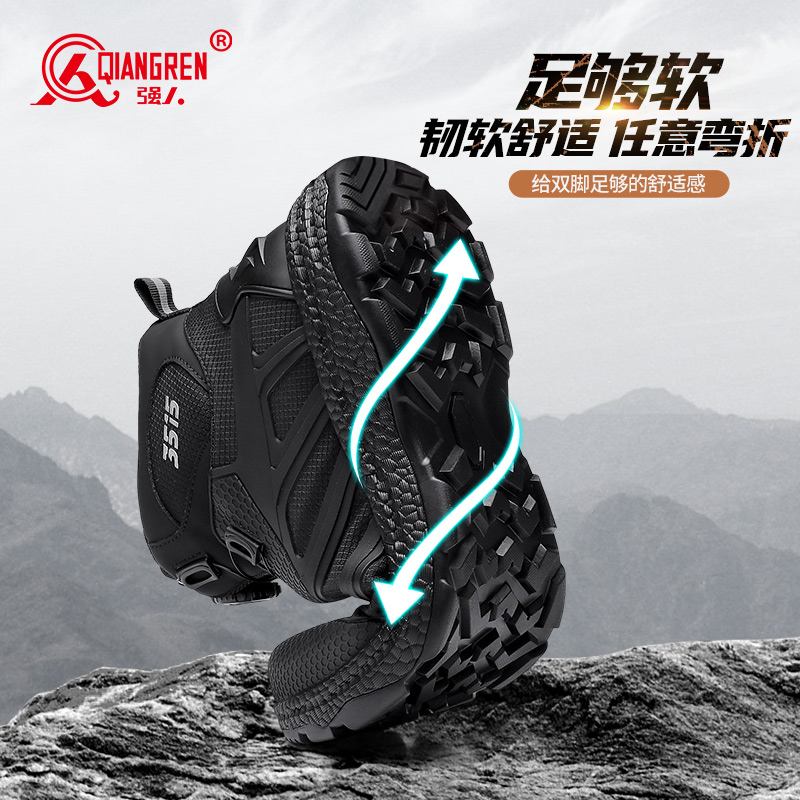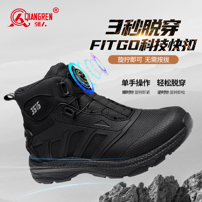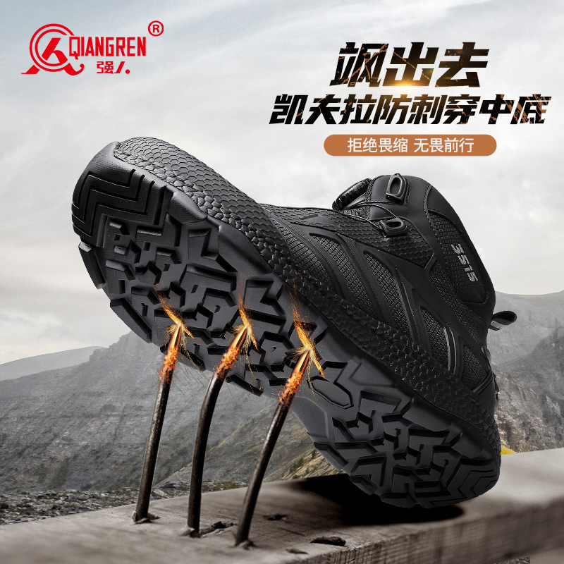 强人3515高帮鞋男款户外训练鞋男靴战术靴防刺穿登山鞋黑色防泼水35QR511-73G