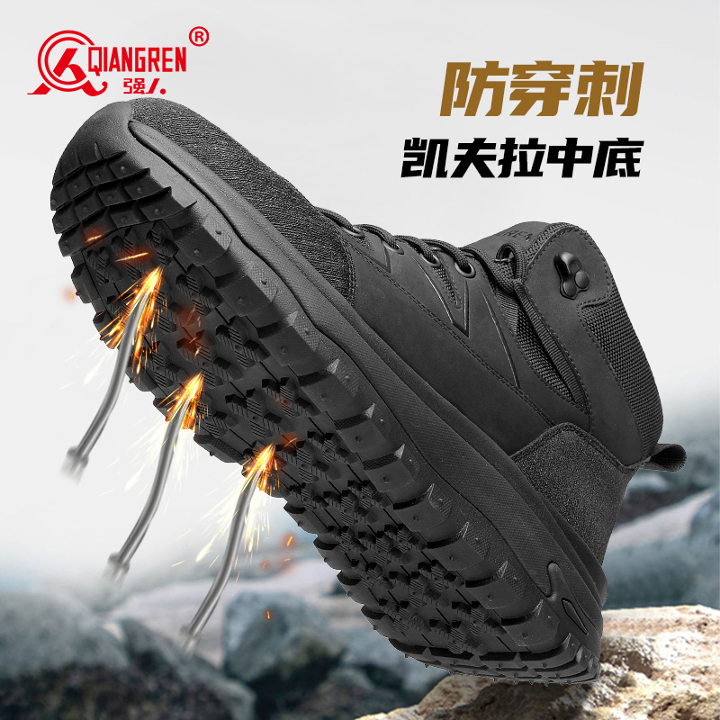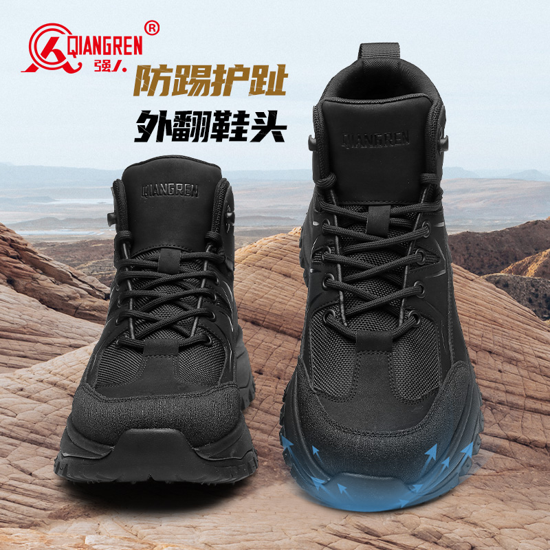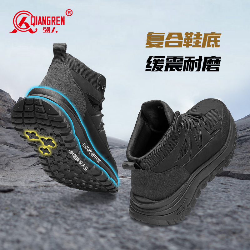强人3515户外鞋男2024春季高帮厚底登山鞋防滑防泼水短靴徒步休闲24QRHW-020