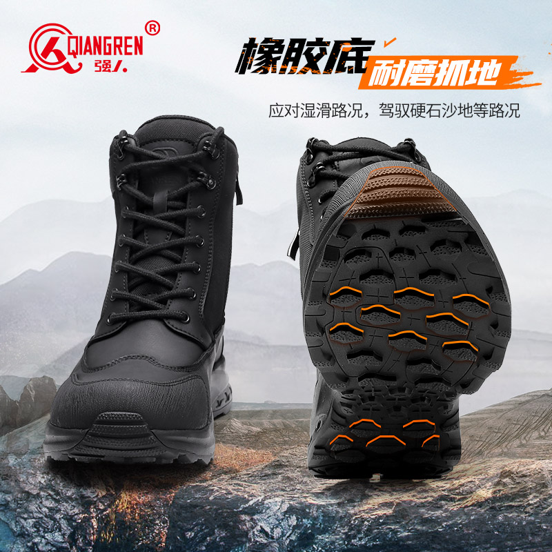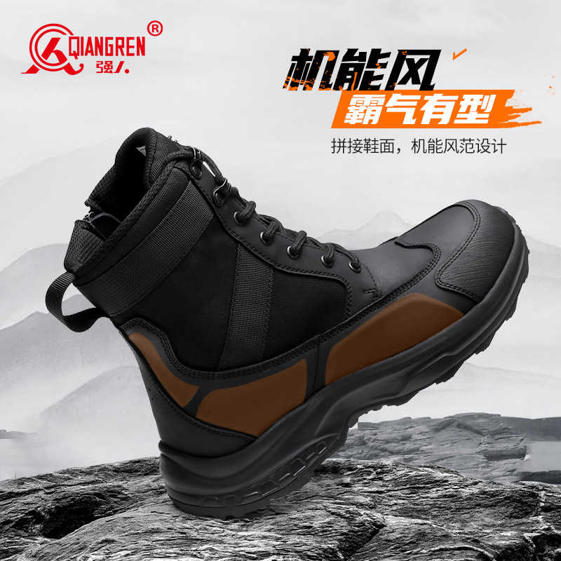 强人3515高帮鞋男款户外训练鞋男靴战术靴防刺穿登山鞋黑色QRHWDS-072G