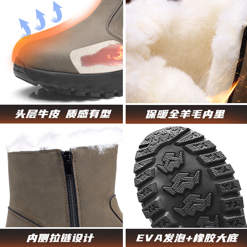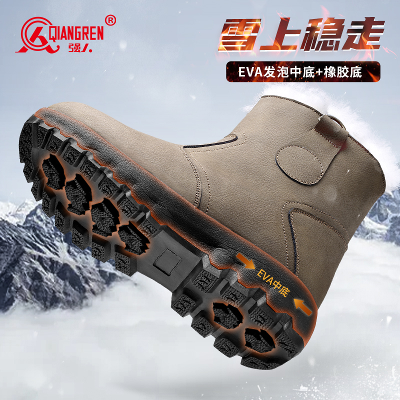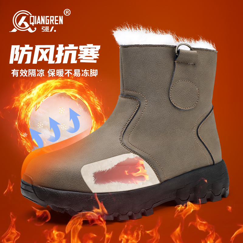 强人3515男靴真皮羊毛保暖棉靴户外加厚高帮棉鞋骑行靴东北雪地靴HYH-DL