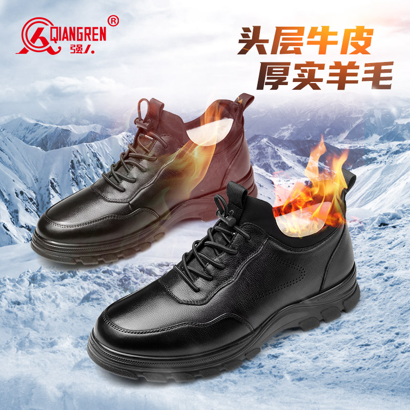 3515强人运动皮鞋男冬季保暖棉皮鞋休闲羊毛鞋厚底加绒潮流运动鞋730137