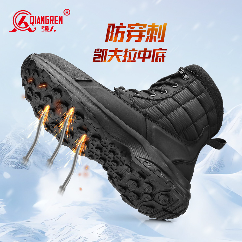强人3515男靴冬季保暖加绒靴户外高帮棉鞋登山训练鞋战术靴防刺穿-071GM