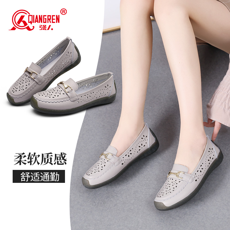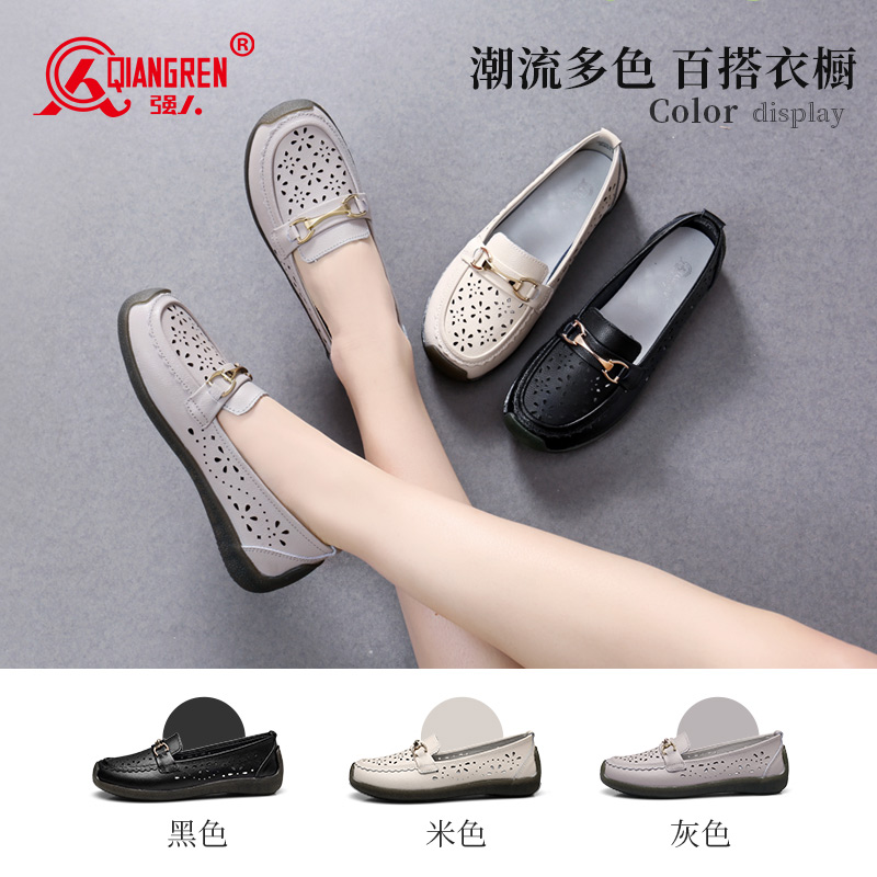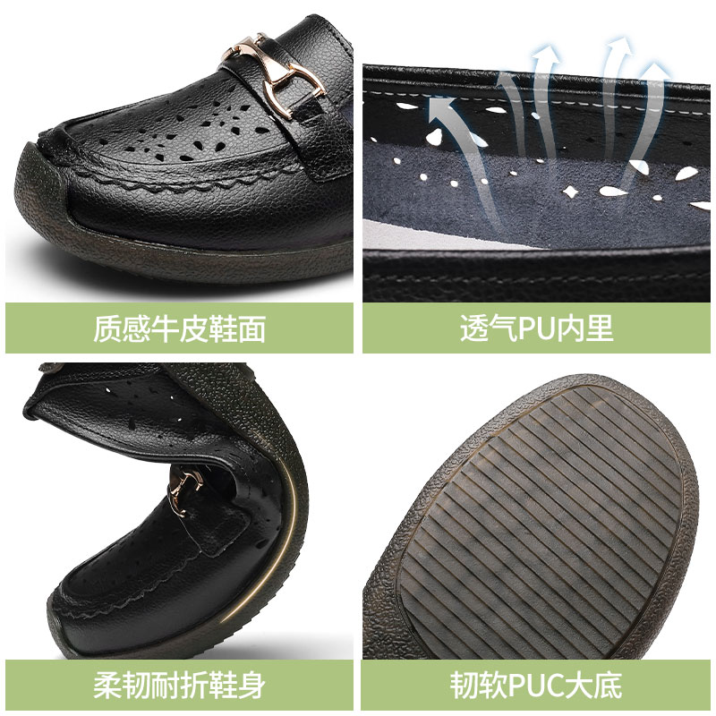 3515强人妈妈鞋镂空洞洞豆豆鞋女乐福鞋透气便捷平底凉皮鞋 237045