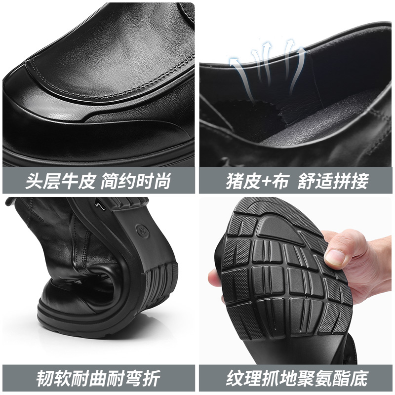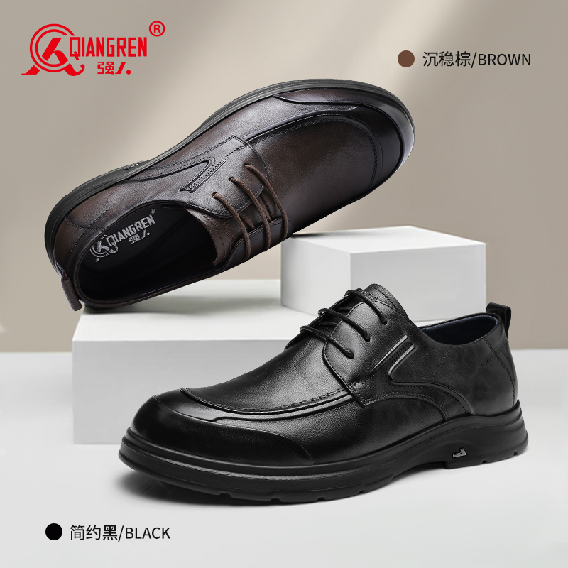 强人3515休闲皮鞋2025春新款男款真皮商务通勤鞋厚底潮流男士皮鞋073267