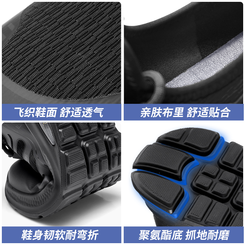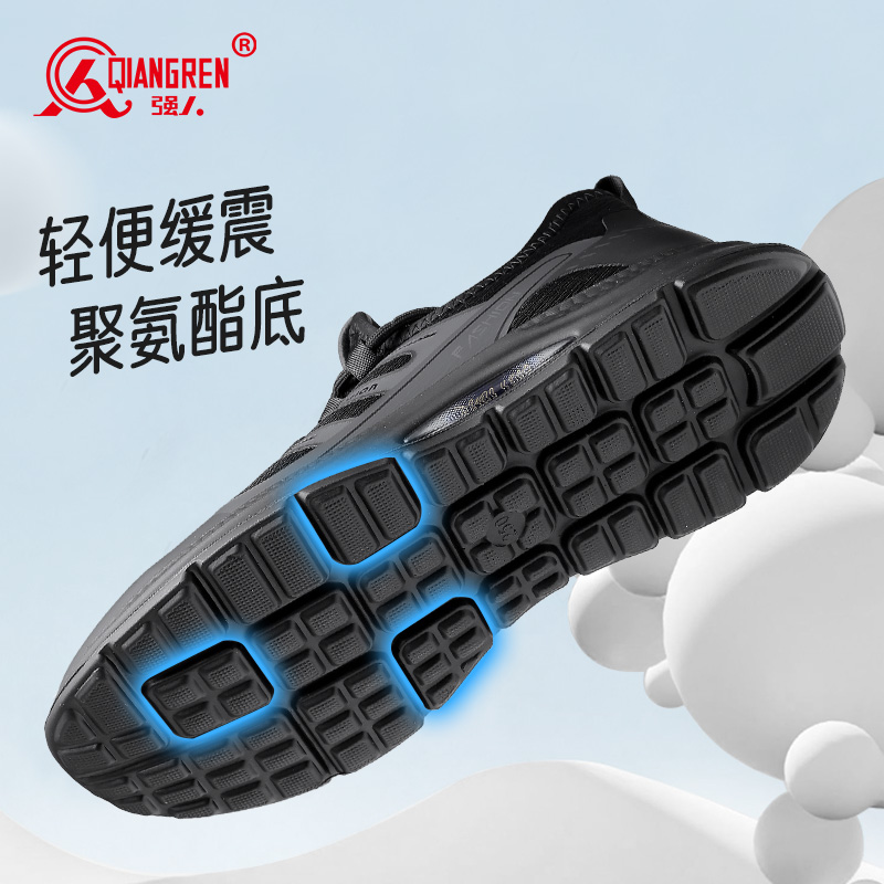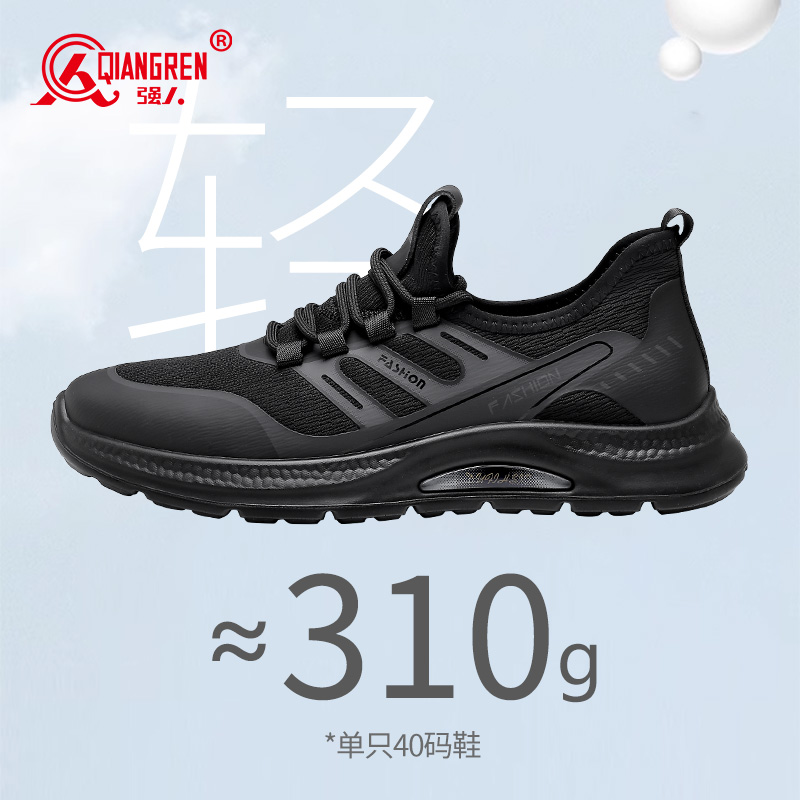强人3515男鞋2025春季新款运动休闲鞋跑步鞋厚底飞织黑色通勤训练鞋子073265