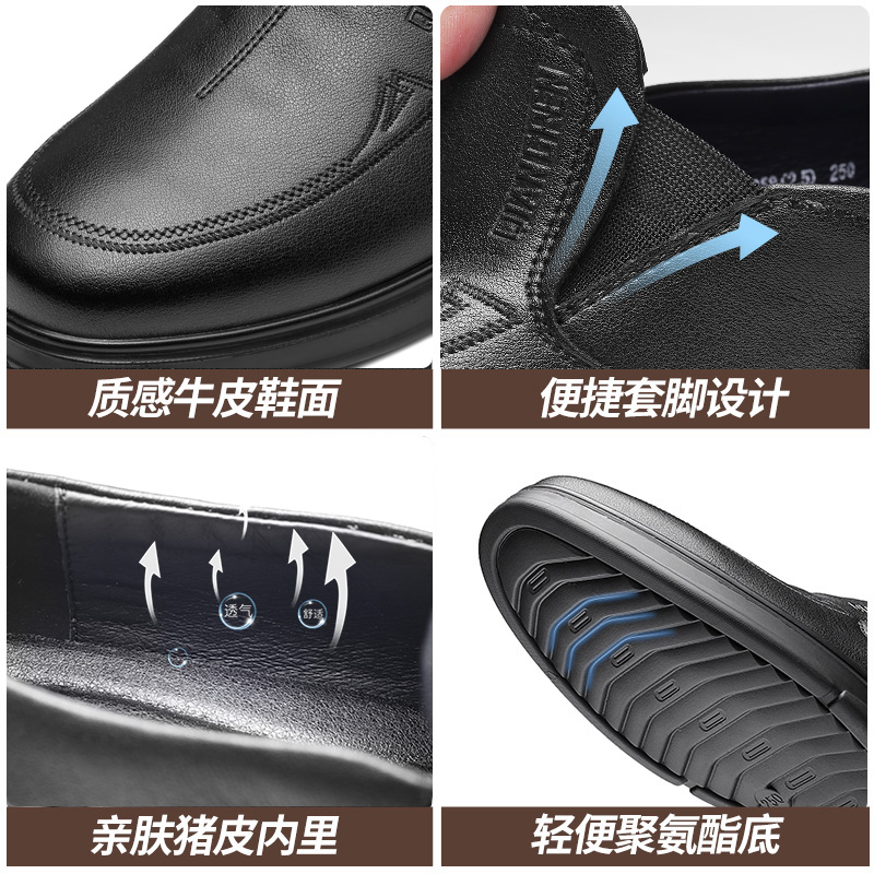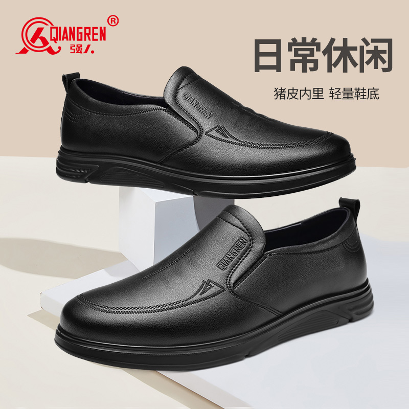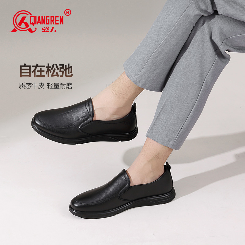 强人3515男士皮鞋一脚蹬商务休闲鞋低帮软底中年爸爸鞋男单鞋舒适351358