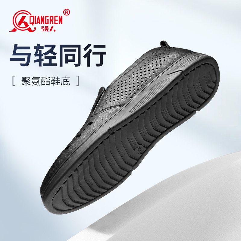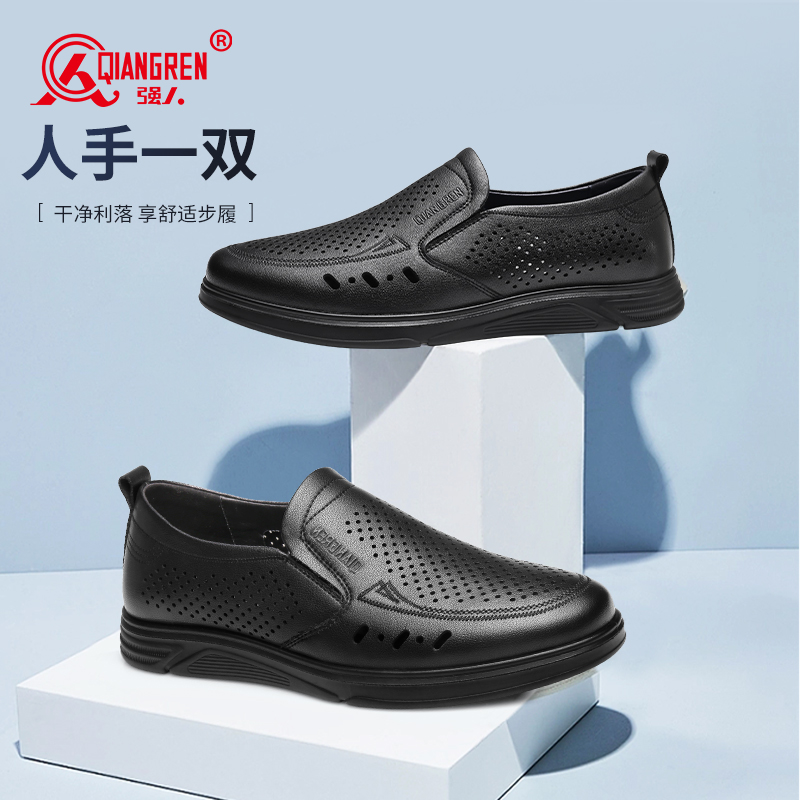强人3515休闲凉皮鞋套脚 男夏季真皮透气镂空鞋商务休闲鞋中年男士皮鞋351361
