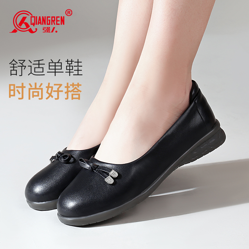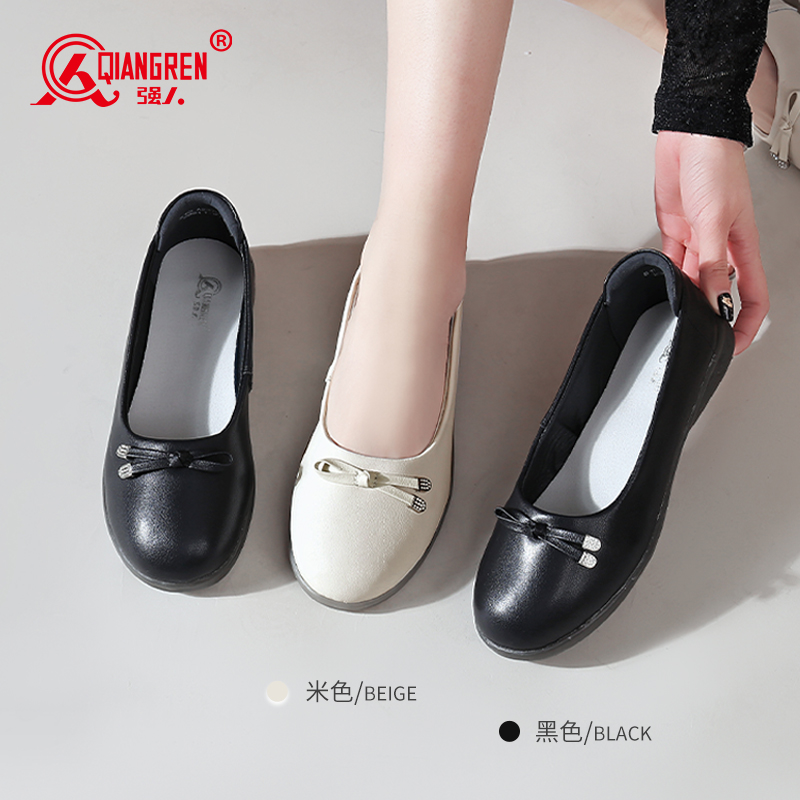 强人3515女鞋浅口透气女单鞋一脚蹬软底妈妈鞋平底舒适乐福鞋237069