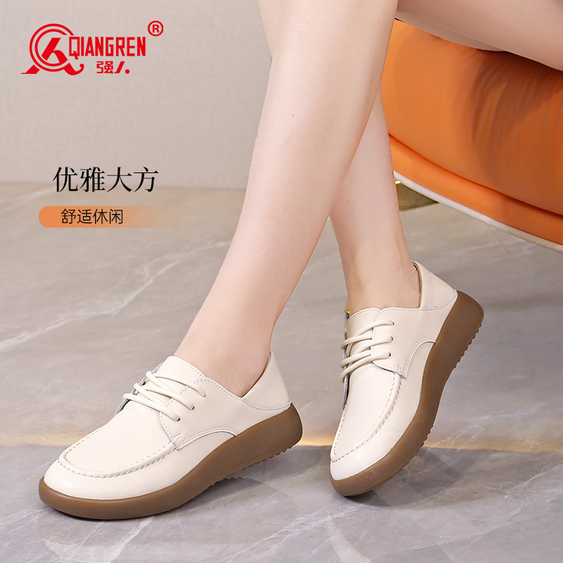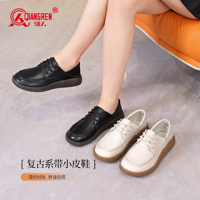 强人3515女鞋低帮系带女士单鞋妈妈鞋舒适英伦风黑色小皮鞋237071