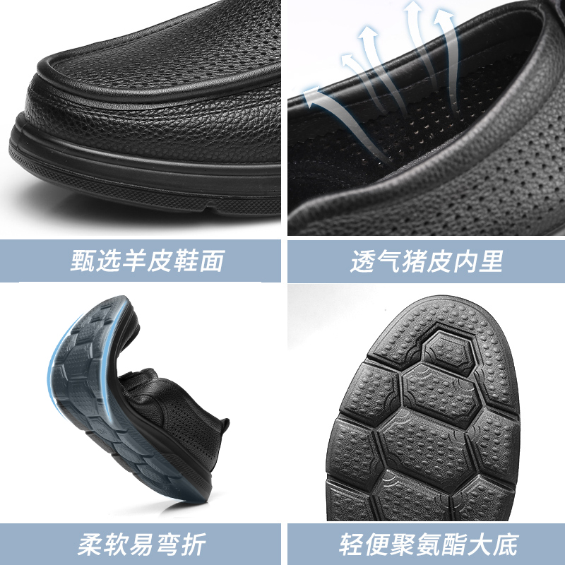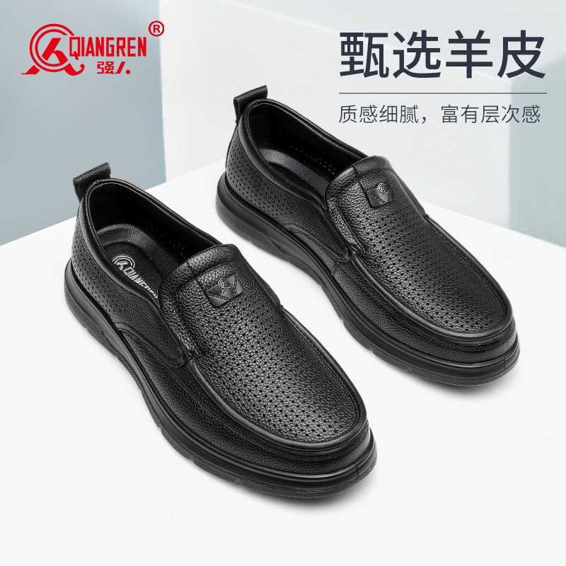 强人3515皮鞋男夏季透气一脚蹬皮鞋镂空软底羊皮凉皮鞋休闲皮鞋S2DXD351319
