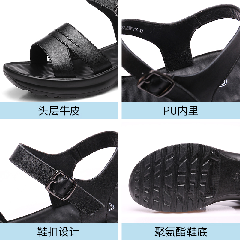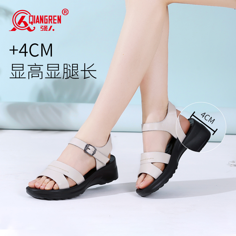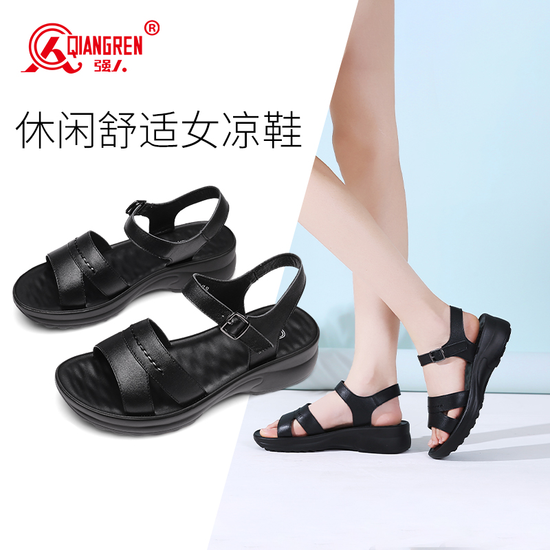 强人3515女鞋夏季透气厚底女士凉鞋头层牛皮软底妈妈凉鞋22DLD111300