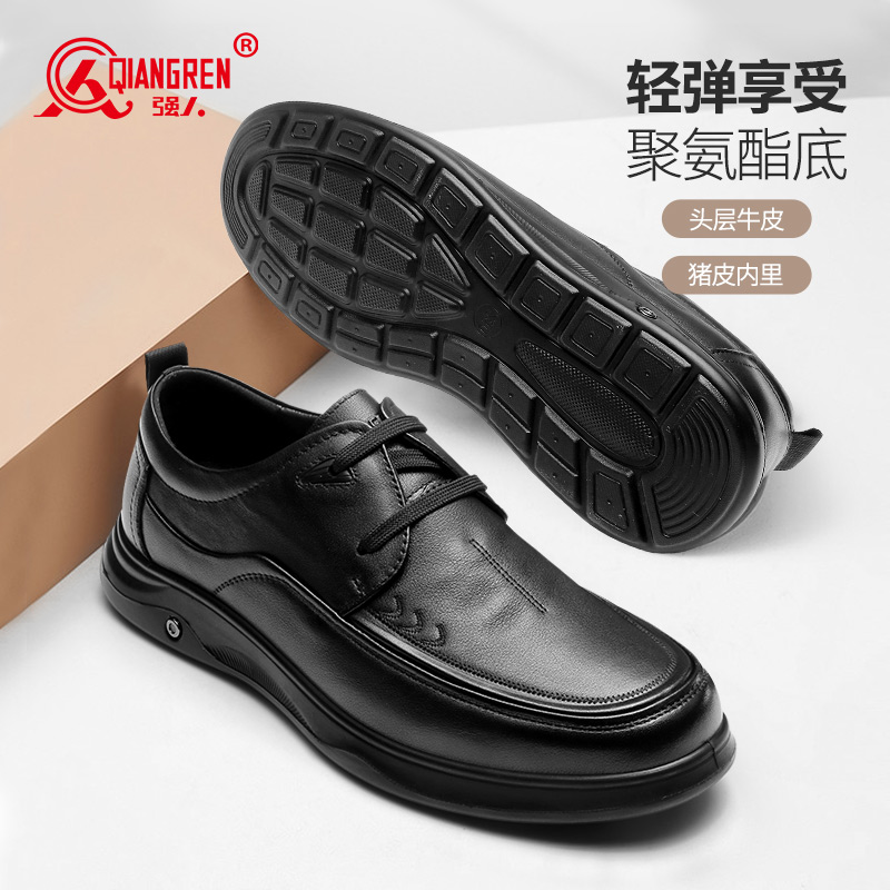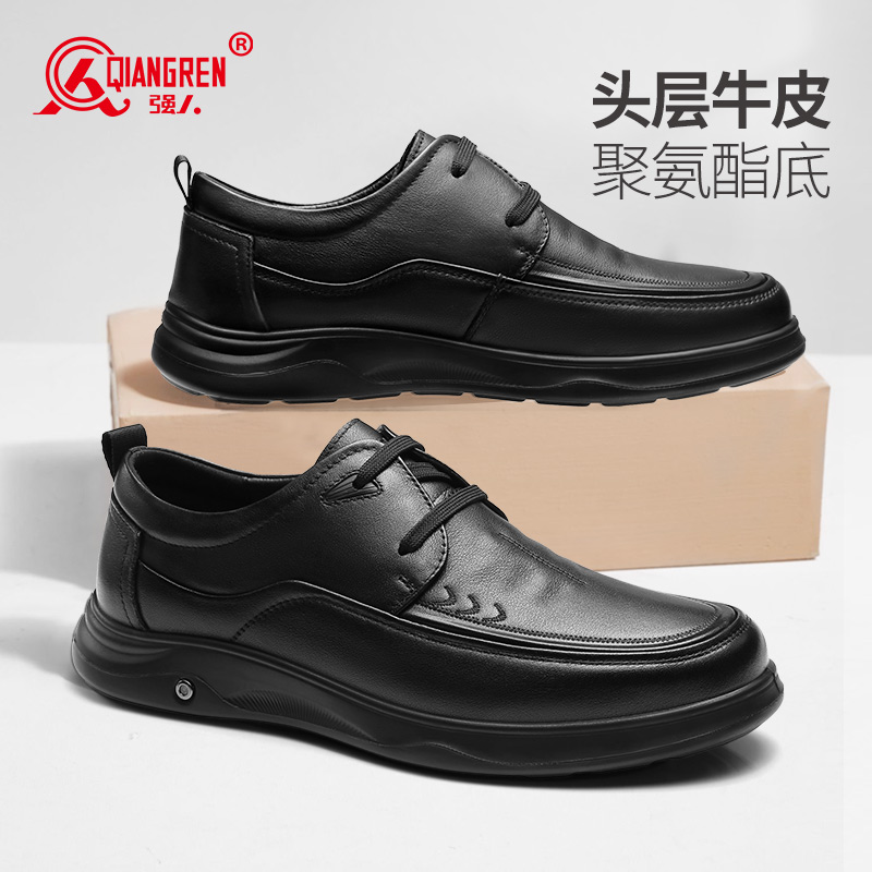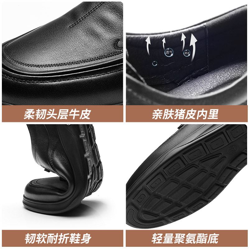 3515强人皮鞋男款真皮系带商务休闲鞋中老年男士皮鞋男单鞋2025春 套脚款351350 系带款351351
