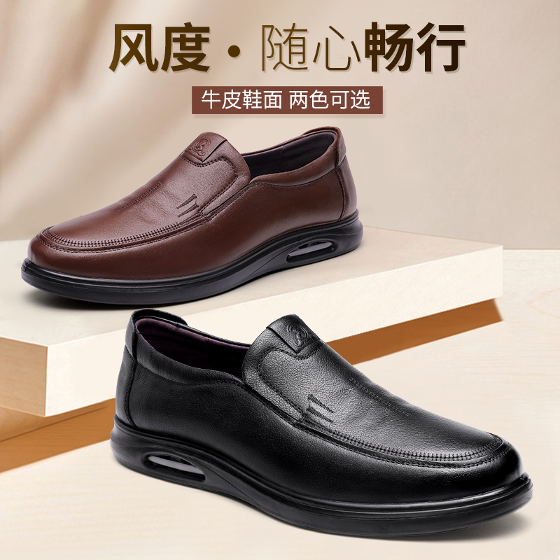 3515强人皮鞋男真皮软底休闲皮鞋爸爸鞋中老年父亲鞋一脚蹬男皮鞋13DXA351047
