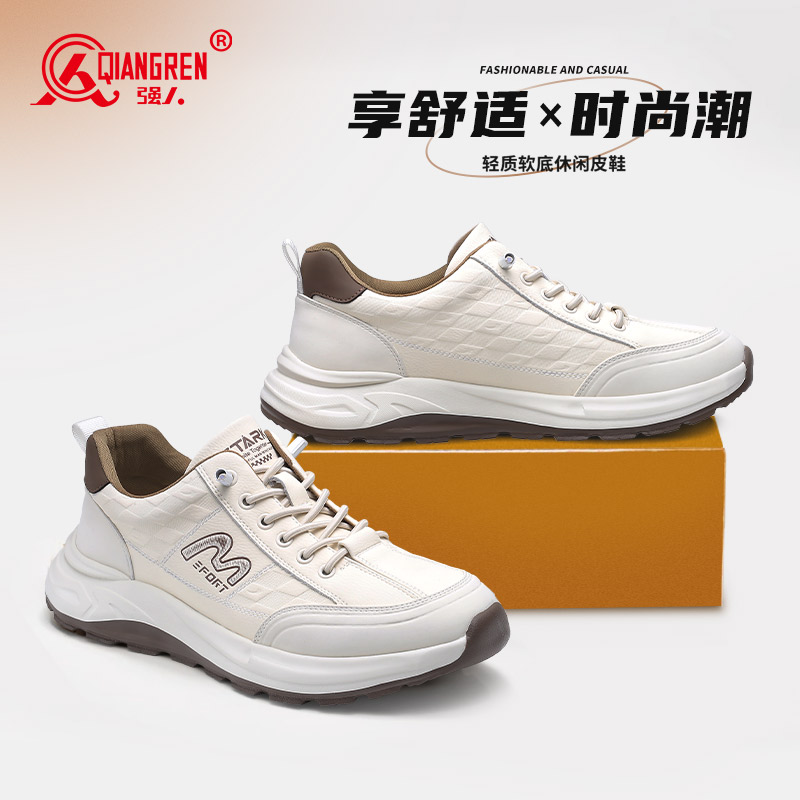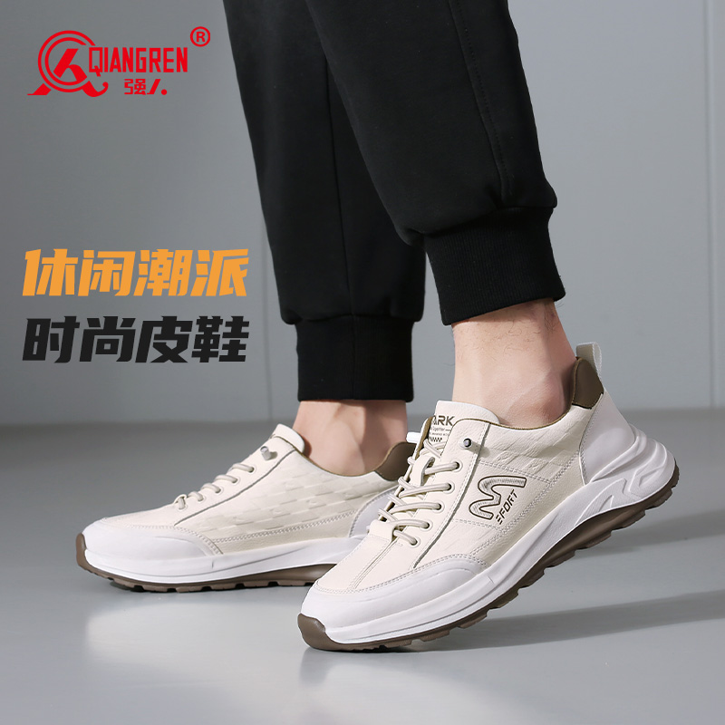 强人3515男鞋运动休闲鞋真皮青年时尚板鞋百搭潮流小白鞋厚底5970010