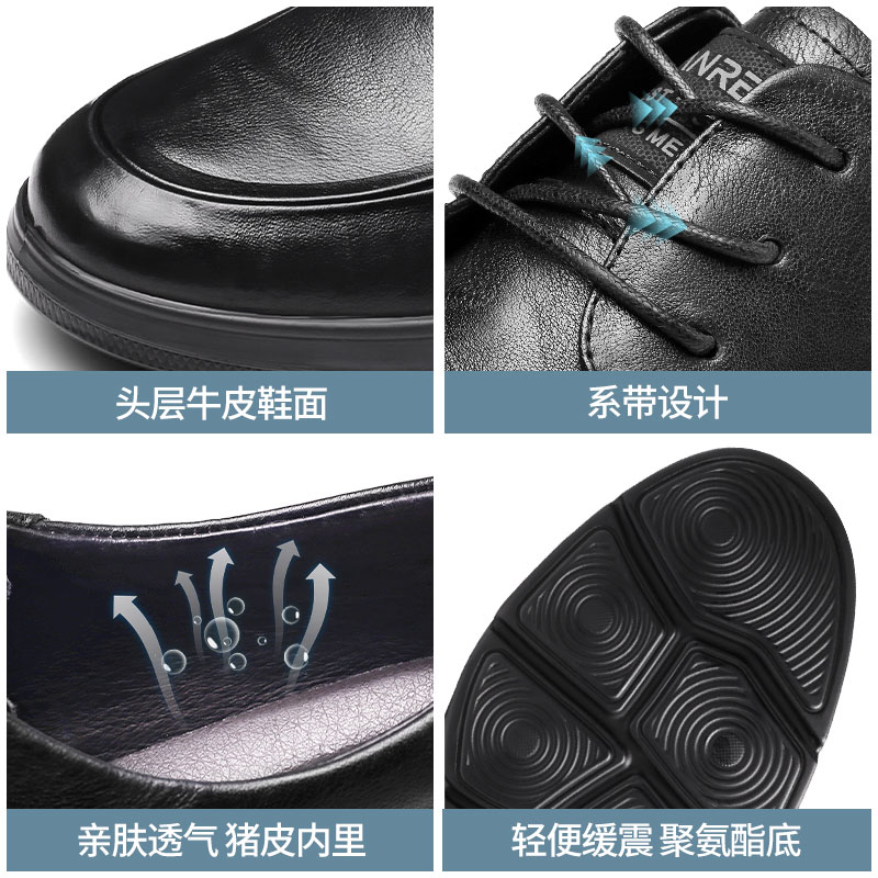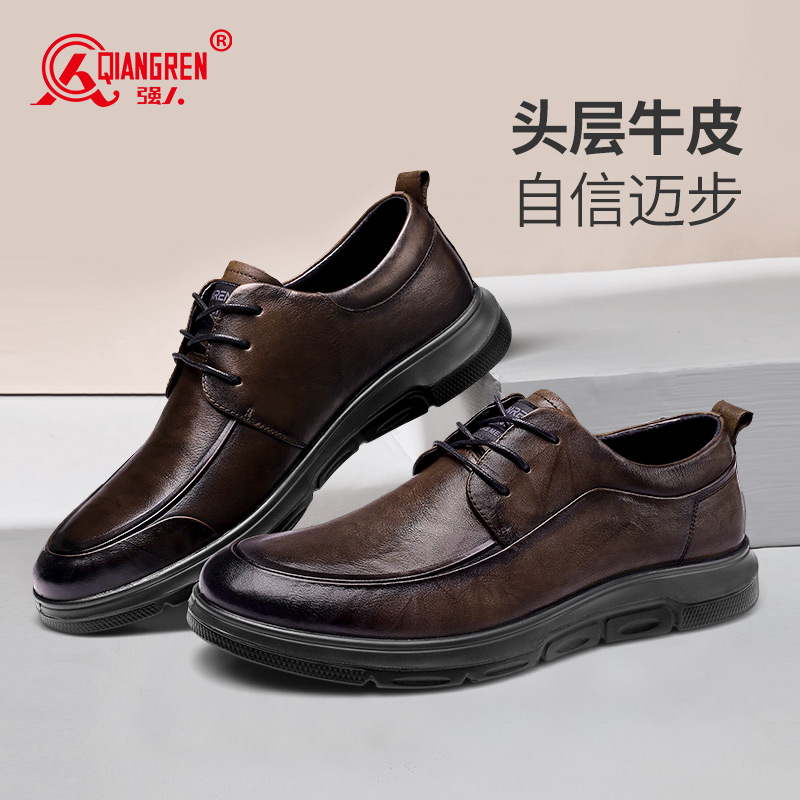 3515强人皮鞋男款春秋商务通勤皮鞋休闲鞋真皮厚底男单鞋87010