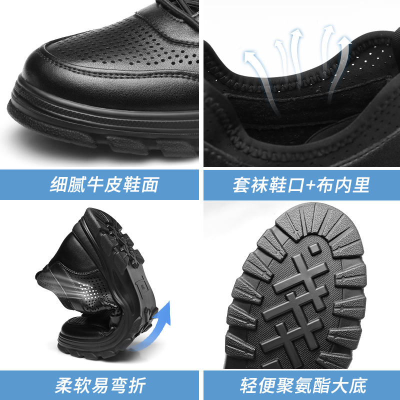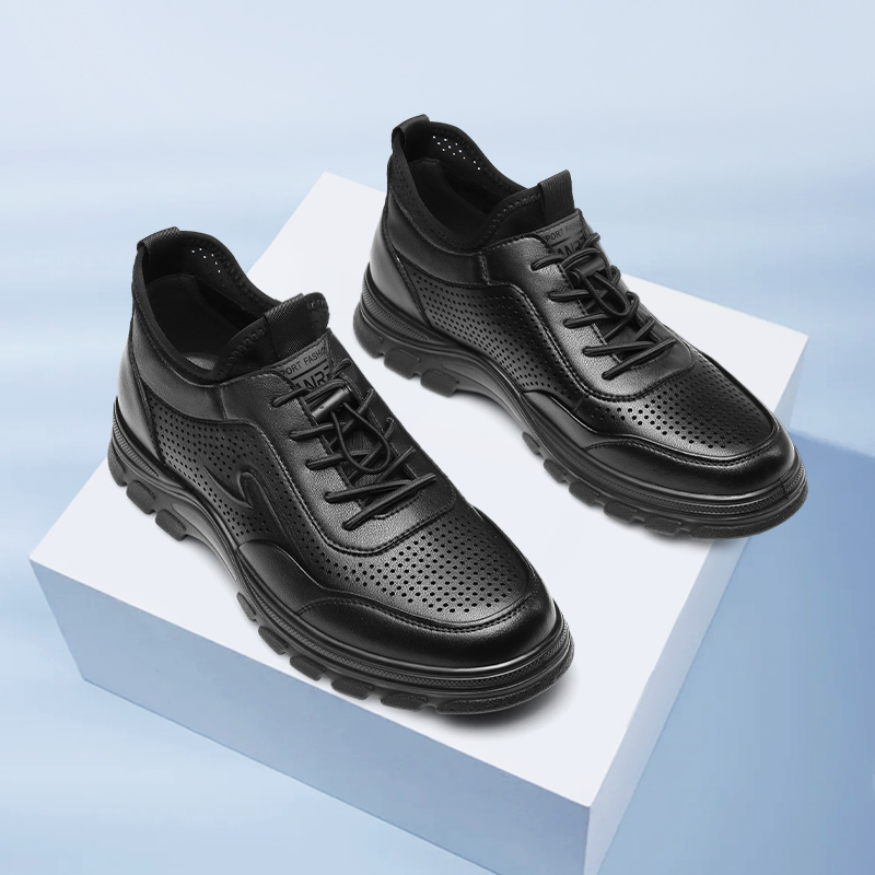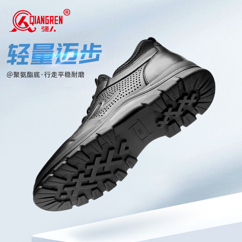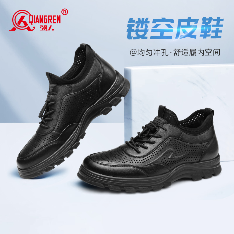 3515强人运动皮鞋男夏季透气凉皮鞋牛皮跑步鞋休闲皮鞋黑色通勤鞋73237