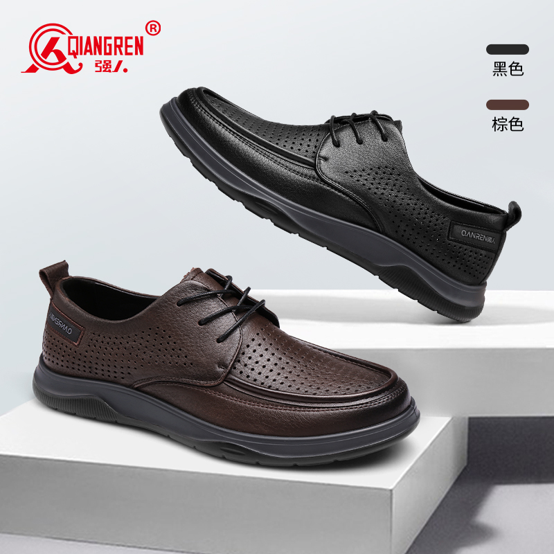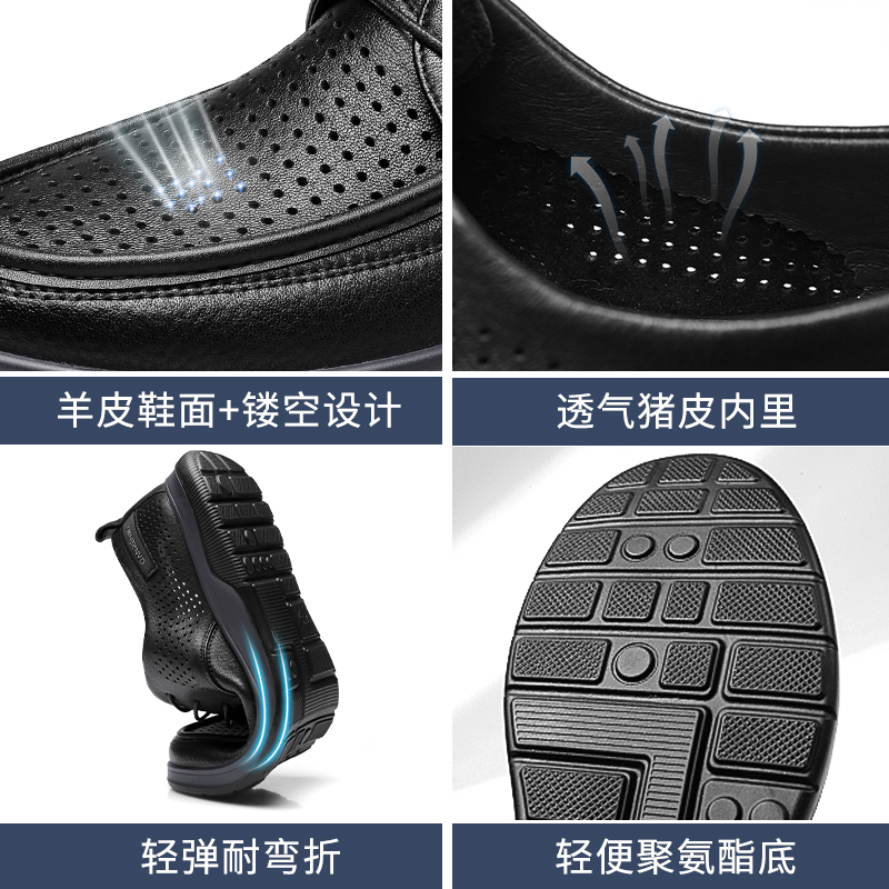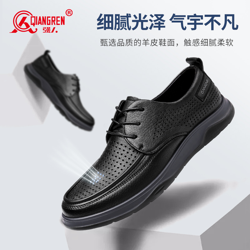 3515强人夏季皮鞋男透气镂空洞洞鞋商务皮鞋凉鞋软底休闲皮鞋羊皮32DXD0870027