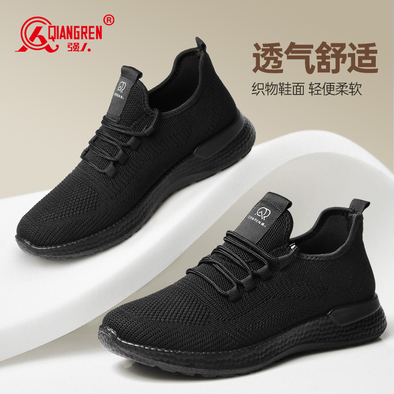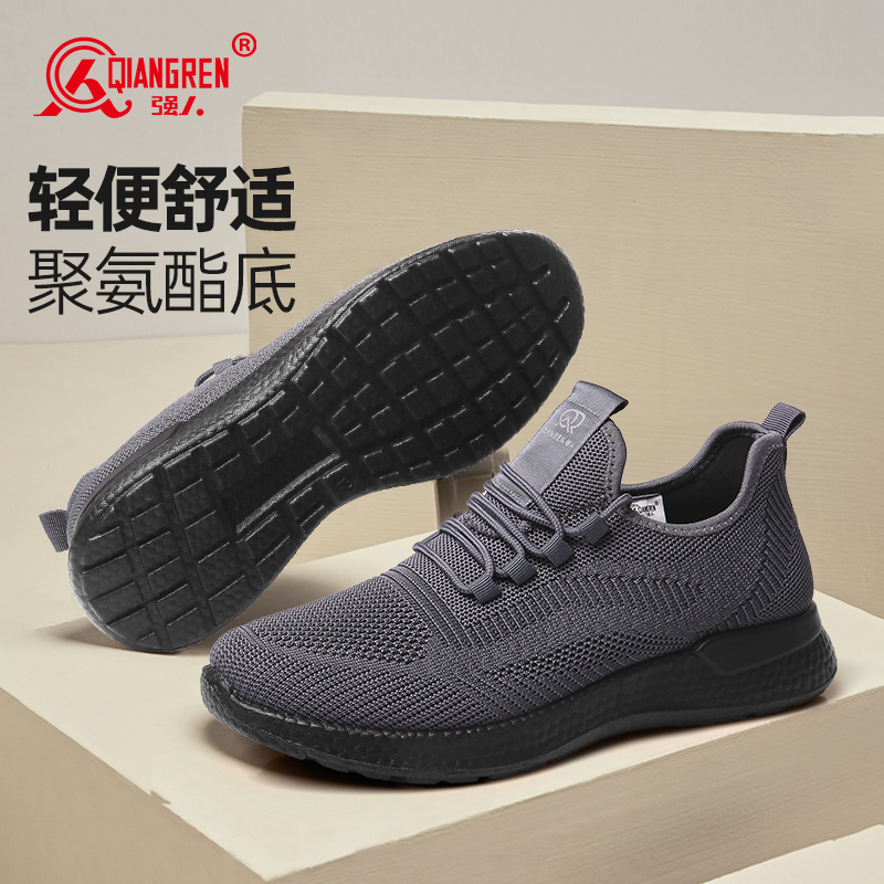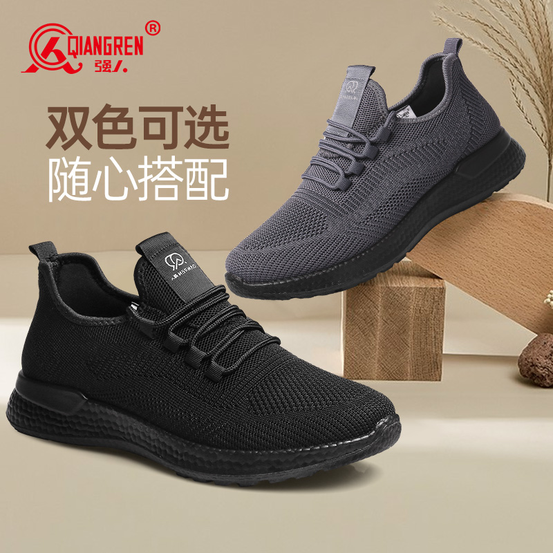 3515强人男飞织运动鞋秋季新款套脚系带透气软底超轻休闲鞋266002