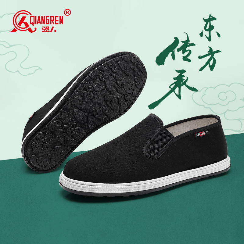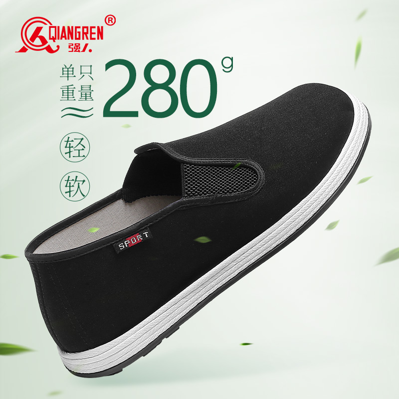 强人3515老北京布鞋男款艾草透气休闲轻便中老年爸爸鞋套脚老人鞋QR-XY