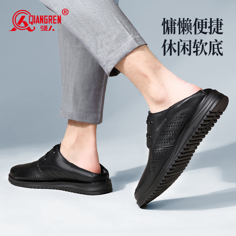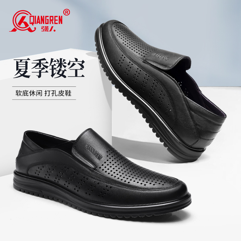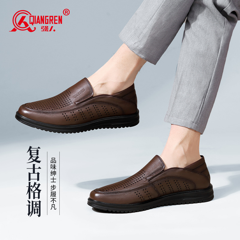 强人3515男鞋加大码凉皮鞋真皮透气镂空鞋夏季休闲男士皮鞋82DXD351008
