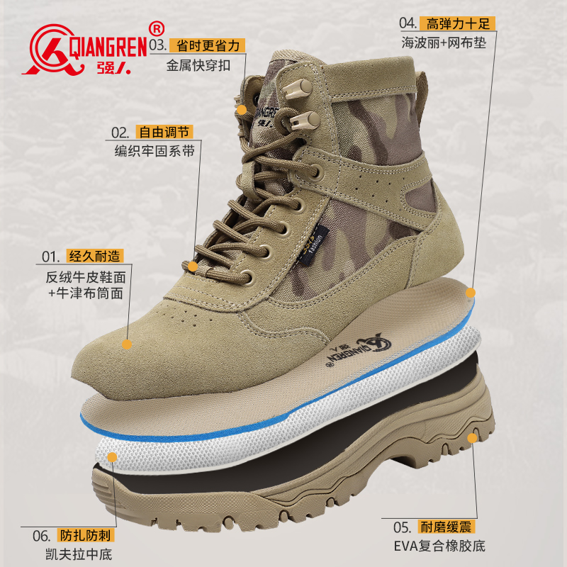际华3515强人男靴户外沙漠靴2025新款夏季薄款透气男士短靴高帮鞋登山徒步JA5-1711MC