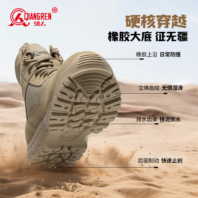 3515强人新式防水训练鞋男户外防刺穿沙色战术鞋防水登山鞋越野徒步鞋SC-6616