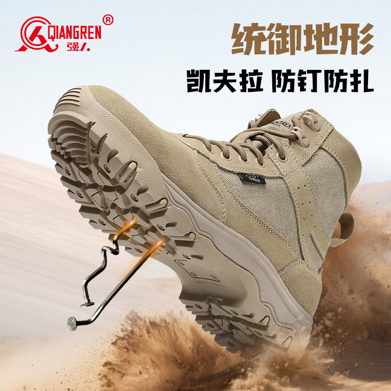 3515强人男靴夏季透气户外训练靴高帮防刺穿战术靴薄款网面登山靴QRFJSB-003