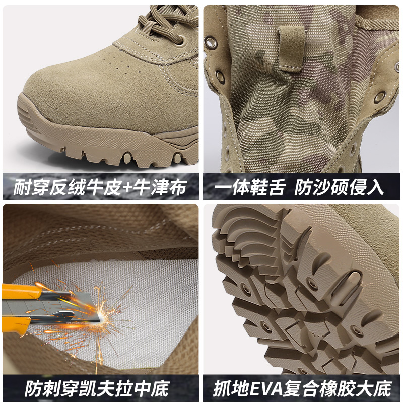 强人3515新式男靴夏季透气薄款户外靴高帮沙漠靴战术靴防刺穿JA7-1712MC