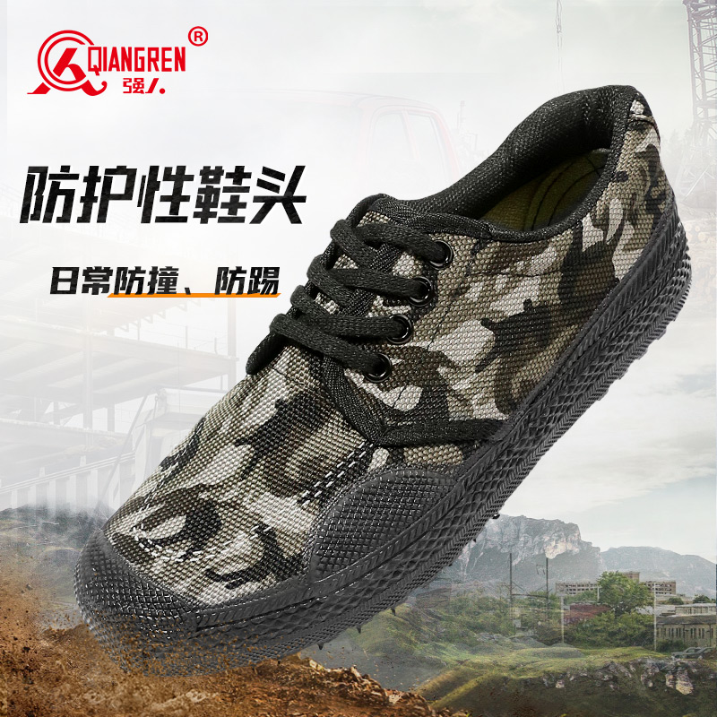 强人3515男解放鞋耐磨防滑工地胶鞋透气劳保帆布鞋系带跑步训练鞋8-A25