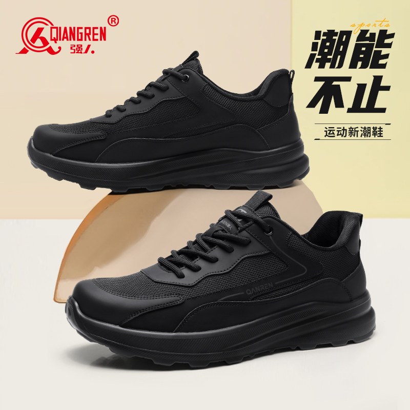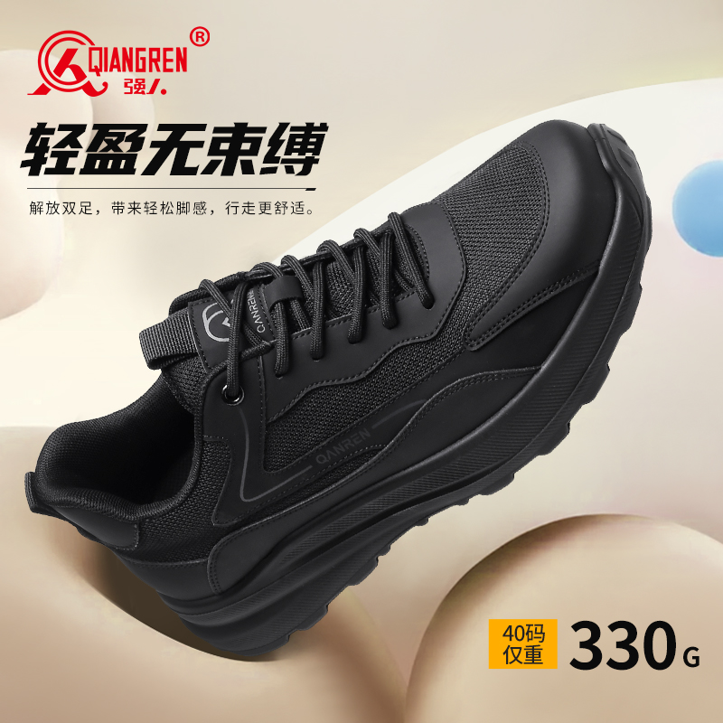 3515强人男鞋2025秋季新款运动休闲鞋网面鞋黑色厚底户外跑步鞋子005133