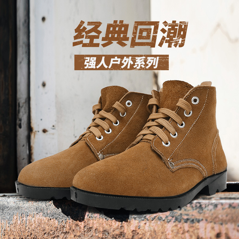 强人3515真皮复古大头鞋男耐磨防滑户外工作鞋男士反绒皮干活鞋子MYZX-6A