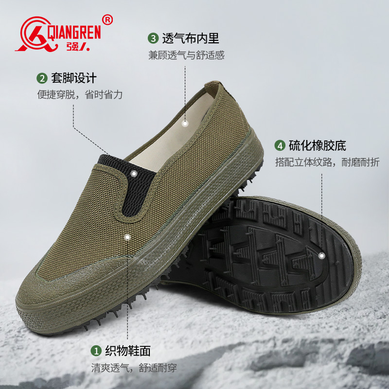 强人3515解放鞋男女春秋套脚软底农田胶鞋耐磨透气户外工作帆布鞋F23-8