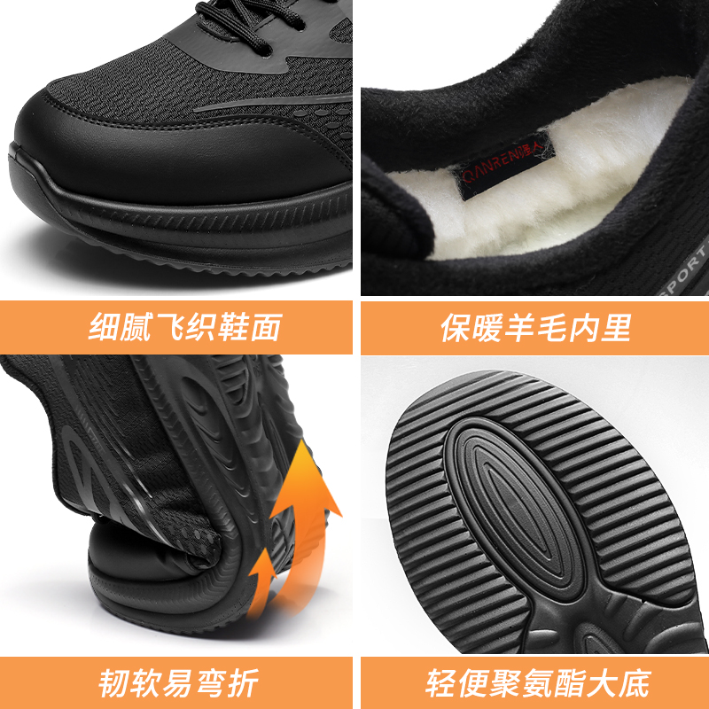 3515强人男鞋冬季保暖羊毛鞋运动休闲鞋黑色厚底百搭潮鞋73262