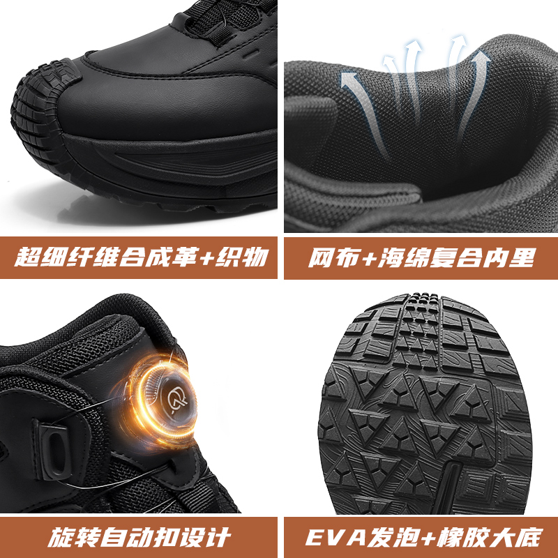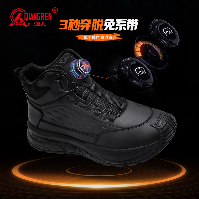 3515强人新式训练鞋高帮男鞋户外防刺穿战术鞋短靴黑色耐磨免系带 511-090GM