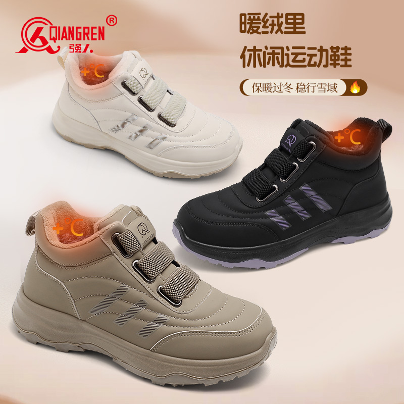 强人3515新款女鞋加绒棉鞋时尚三色可选黑色/米色/卡其267035