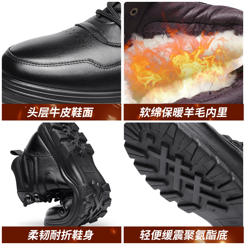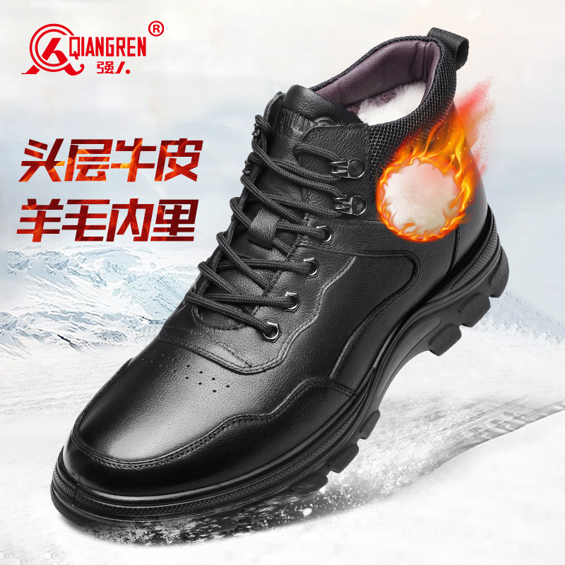3515强人运动皮鞋男冬季保暖棉皮鞋加绒羊毛鞋厚底潮流休闲户外鞋 730136