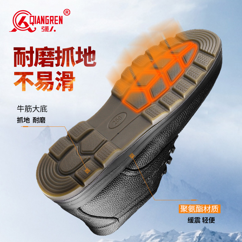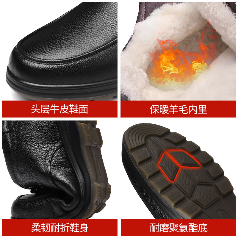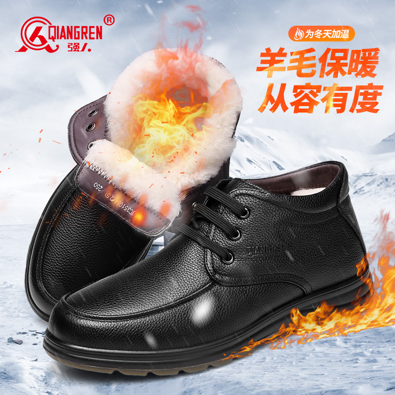 强人冬季保暖棉皮鞋中老年爸爸鞋加绒加厚老人棉鞋防滑牛筋底棉靴 351084