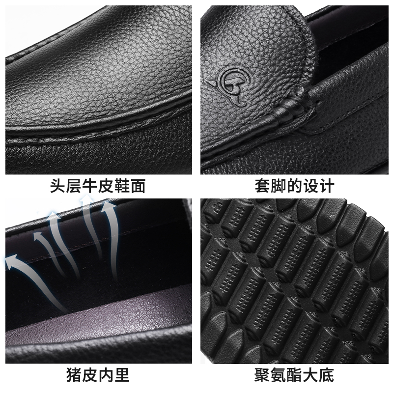 3515强人皮鞋真皮软底驾车鞋男士皮鞋轻便透气男单鞋一脚蹬皮鞋 351049